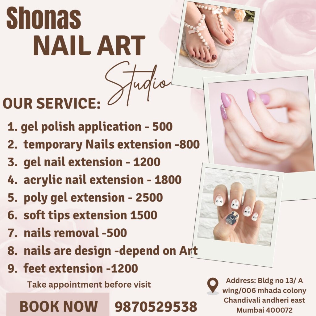 "Your Nails, Our Art" At Shona’s Nail Art, We specialize nail extension, elegant designs, and long lasting finishes, we create nails you’ll love. Why choose Shona's Nail Art Studio Expert nail artist with attention to detailHigh quality & skin-safe productsCustomized nail designsClean & comfortable studioLong lasting, perfect finish Book Your Appointment